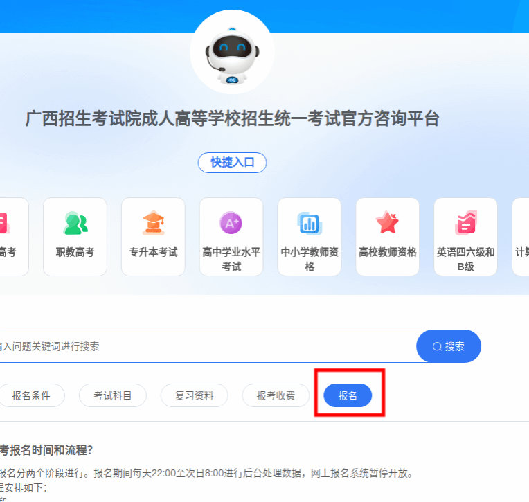 为更好地服务广大考生,及时解答大家的疑问,广西招生考试院已正式开通线上智能咨询平台。考生可通过该平台,随时随地发起咨询,高效解决报考的相关问题。