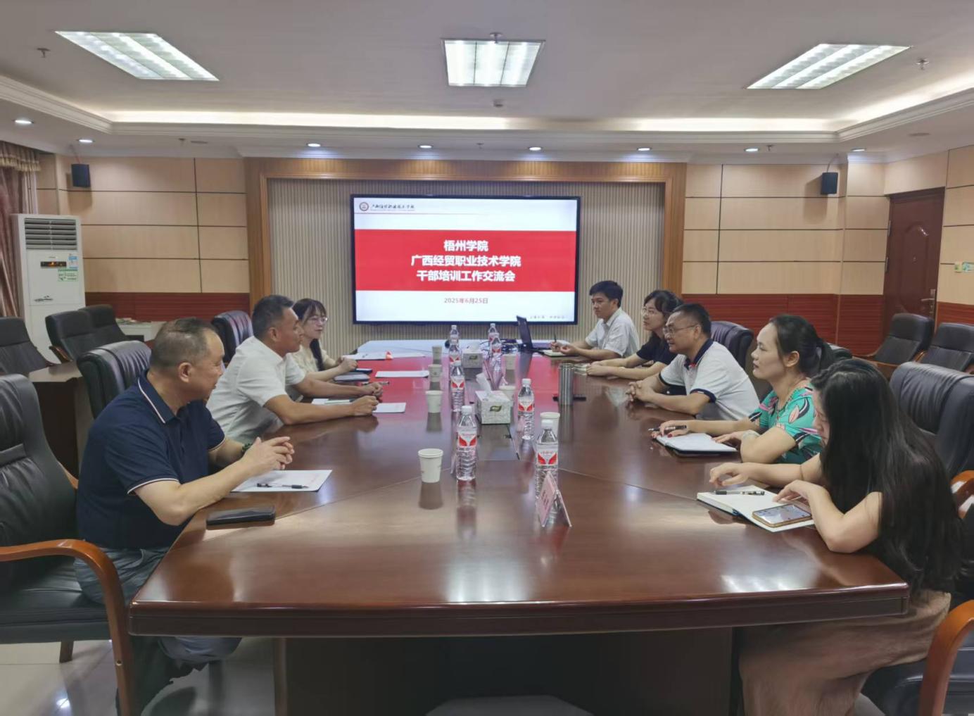 为进一步做好培训服务,提高干部培训质量。6月25日上午,梧州学院党委常委、统战部部长黄健武带领继续教育学院相关人员一行4人,赴广西经贸职业技术学院、广西机电职业技术学院开展干部培训服务交流活动。此次活动旨在为两所兄弟院校在干部教育培训提供服务,并在党建、统战、继续教育工作等方面进行交流,共同探索新时代高校干部队伍建设的新路径。